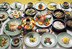 Le hall d’entrée et le restaurant de l’hôtel se parent d’une couleur jaune dominante, symbole de la Terre et du centre, accompagnée par les figurines de coiffes traditionnelles de Jeong Min-lee et Kwon Oh-hyeok et le costume traditionnel de Lee Seon-young.